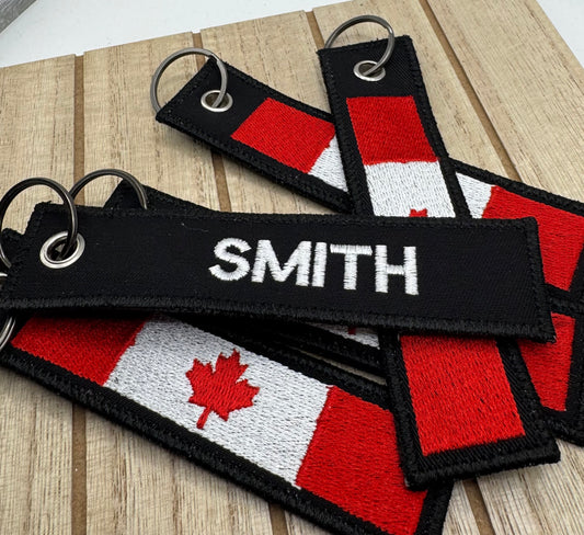 Personalized Canada Embroidered Keychain, Luggage Tag, Key tag - Customize with your name