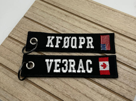 Personalized Amatuer Ham Radio Keychain Embroidered with your callsign, Double Sided